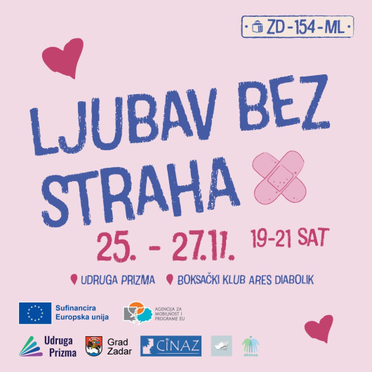 Aktivnosti će se koja odviti krajem studenom, a kroz projekt ZD-154-ML. Od 25 do 27. studenog odvit će se aktivnost „Ljubav bez straha“ koja će se provesti kroz 3 faze. Cilj je da kroz iskustveno učenje i na inovativan youth-frendly način potaknuti mlade da izraze svoje potrebe u području mentalnog zdravlja i prevencije nasilja u intimnim vezama. Iznosi kako je već dosta toga spremno za samu aktivnost.