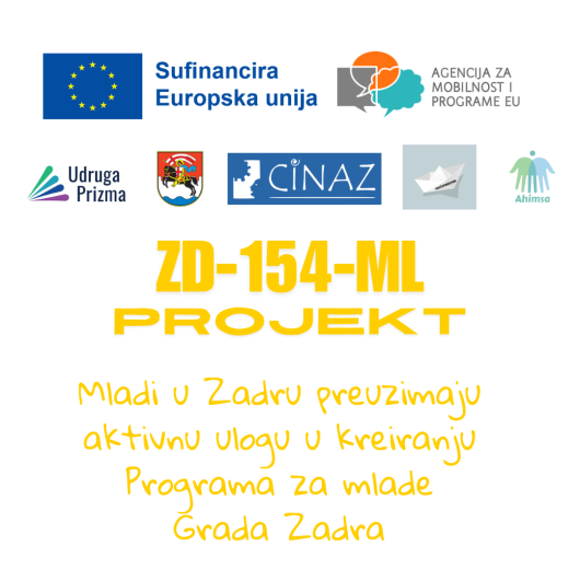 Grad Zadar je korak bliže ka ostvarivanju veće uključenosti mladih u procese donošenja odluka s početkom provedbe novog projekta pod nazivom ZD-154-ML kojega vodimo u suradnji s partnerima Udrugom Prizma, Gradom Zadrom, Udrugom Cinaz i Udrugom Trećeprostor. Projekt, koji će trajati od 1. lipnja 2024. do 30. rujna 2025. godine, financira Europska unija s ukupnom vrijednošću od 47.206,00 EUR kroz program Erasmus+.